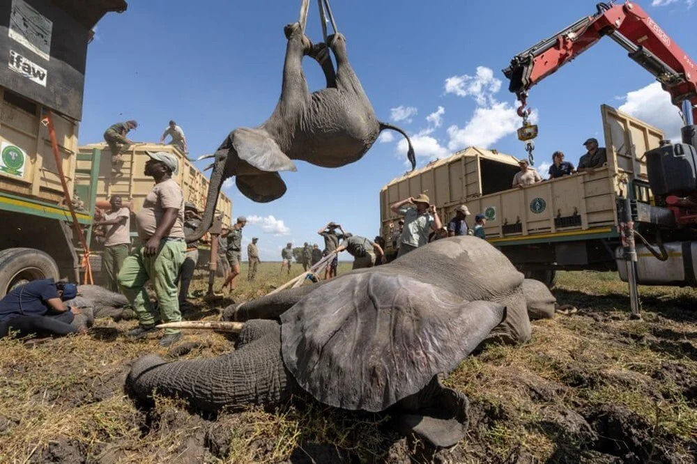 Fotoğrafın hikayesi: Filler Liwonde ulusal parkından Malawi'deki Kasungu ulusal parkına taşınıyor. Filler önce sakinleştiriliyor, ardından vinçlerle kamyonlara yerleştiriliyor ve yolculuk sırasında uyandırılıyor. Tüm bu işlemler hayvanlara azami özen ve saygı gösterilerek gerçekleştiriliyor ve bir bölgeden diğerine popülasyonların düzenlenmesine yardımcı oluyor.
